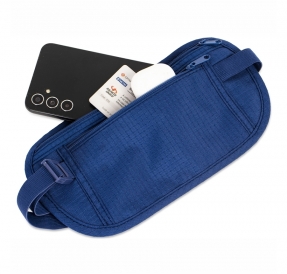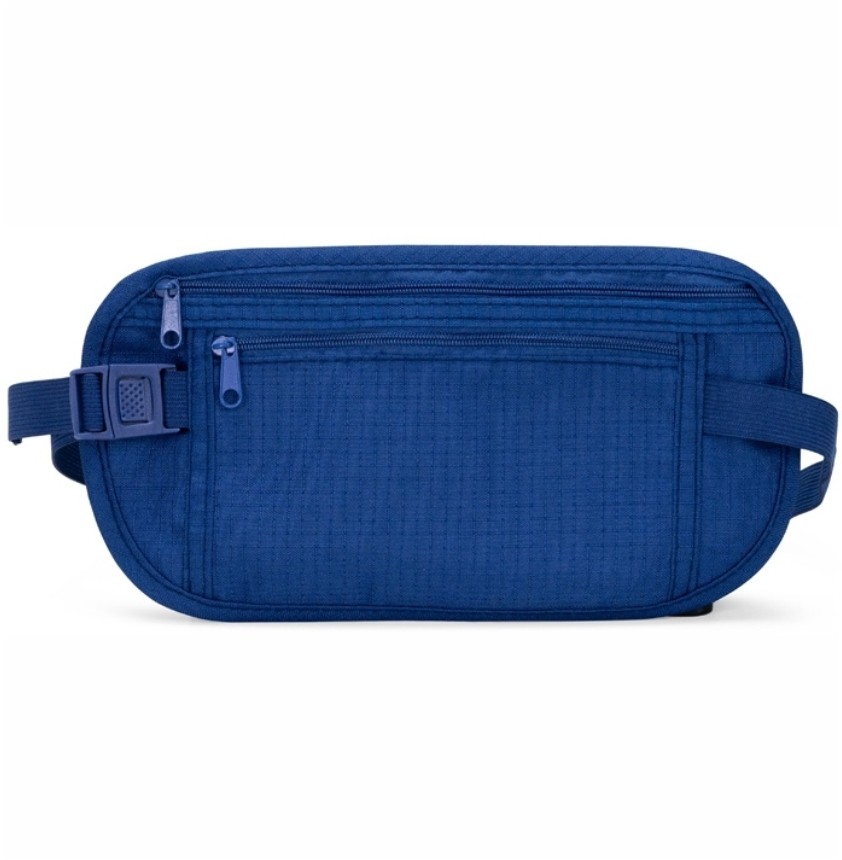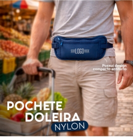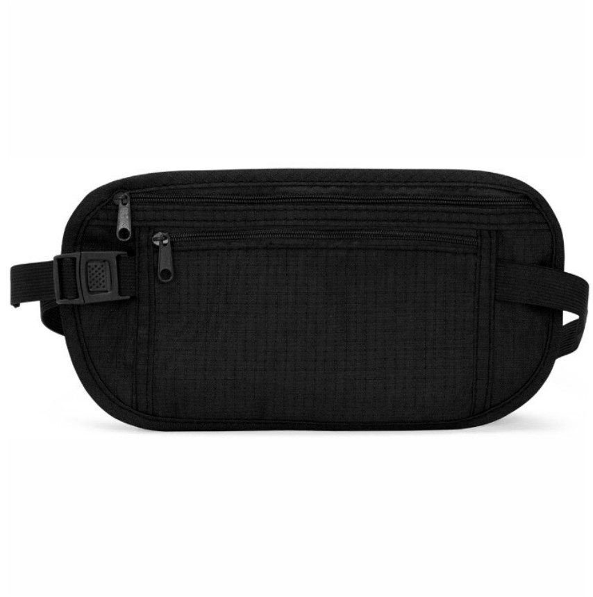 Pochete tipo doleira confeccionada em nylon. Possui design compacto antifurto, dois bolsos de tamanhos diferentes e cinto ajustável em elástico com fivela de encaixe.